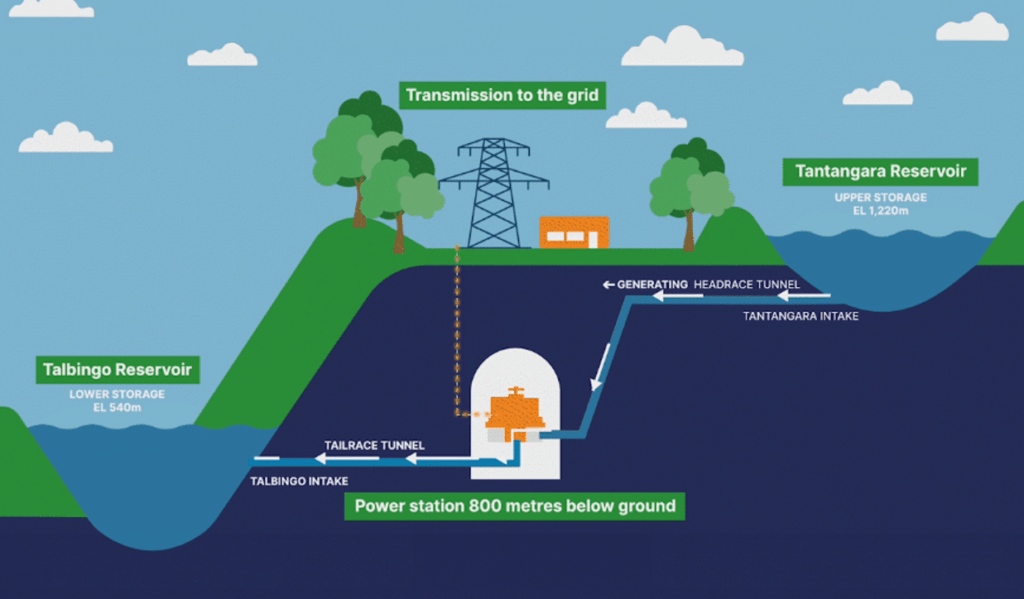 Basically, the Snowy 2.0 project aims to store and generate electricity using water.